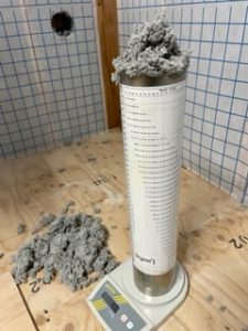 今まで何年もセルロースファイバーを使ってきましたが、そういえば、この量がちゃんと入っているのかどうか?の確認をしたことがなかったです