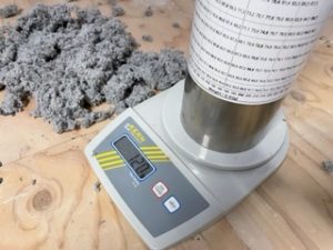 今までは手で触って、断熱材の張り具合で『パンパンに入って良いねぇ~』って感じだったのですが、この『パンパンの感触』がはたして何キロの密度で吹き込まれているのか?