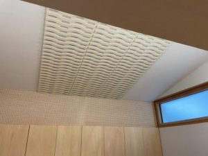 『でも部屋の雰囲気が変わっちゃうから、壁に吸音パネルとかは貼りたくない』という事で、天井にアクセント的に細工