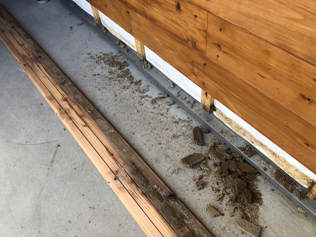 土砂が押し寄せて来て、外壁通気層の中に入り込んでしまったので、その対応