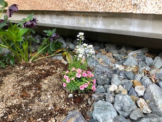 それから、娘が貰ってきた花の苗を玄関前の【猫の額】ほどの花壇に一緒に植え、