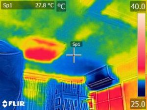 その原因は、ガンガンに照り付ける太陽の熱が屋根瓦に吸収され、小屋裏の空気を熱くして、天井を熱くする。