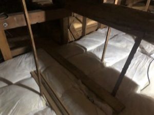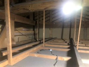 だから、その熱の流れをブロックするため、今回は照明器具をいったん外して、天井裏に断熱材を敷き込みました