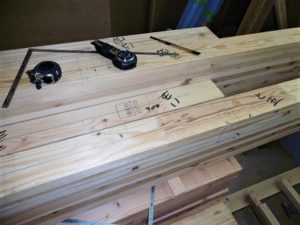 それに比べて”手刻み”となると 大工さんが伏せ図を読み込み、木材1本1本に墨(穴を開けたり長さを切ったりする印)を付けていき、