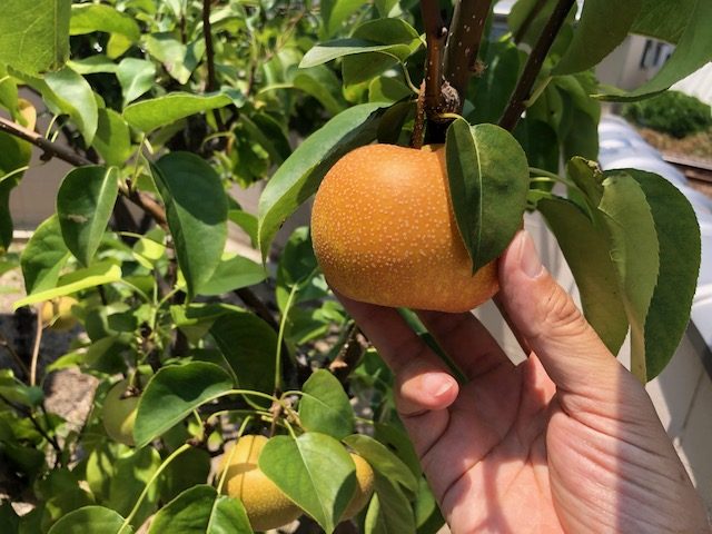 家の裏に植えてある梨が、ちょっとずつですが大きくなっています