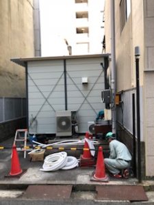 駐輪場の屋根がなくなり、敷地いっぱいに近隣大きな工事現場の仮設事務所が設置されてました