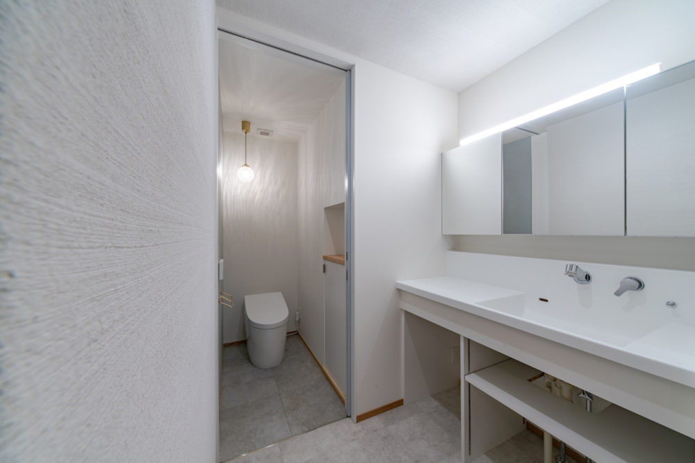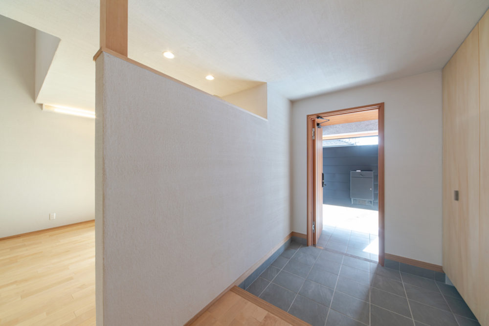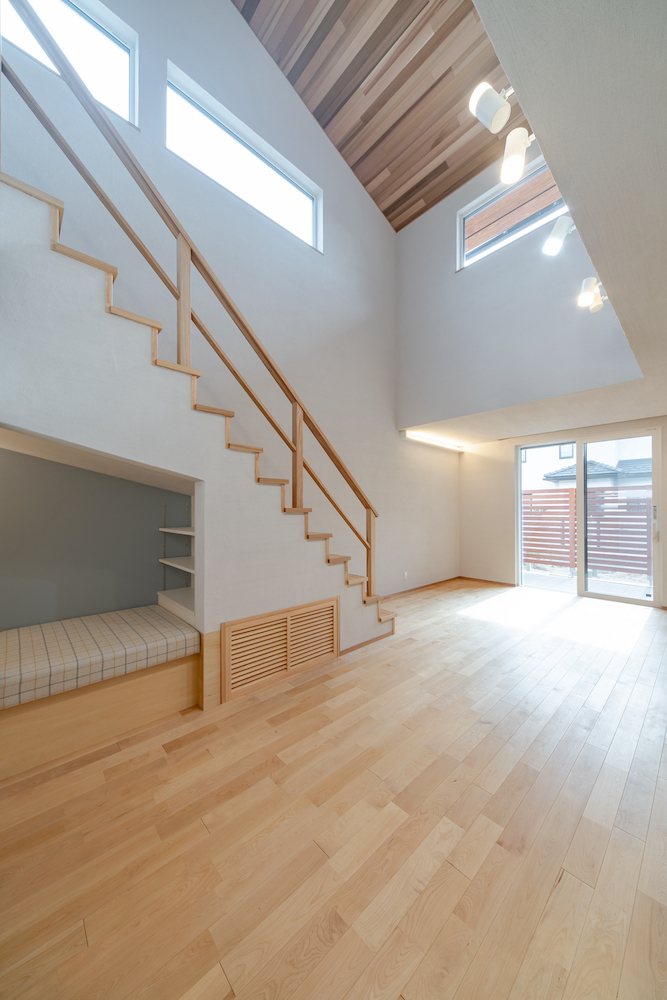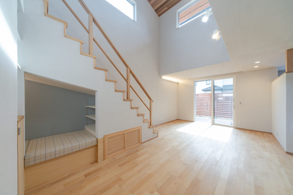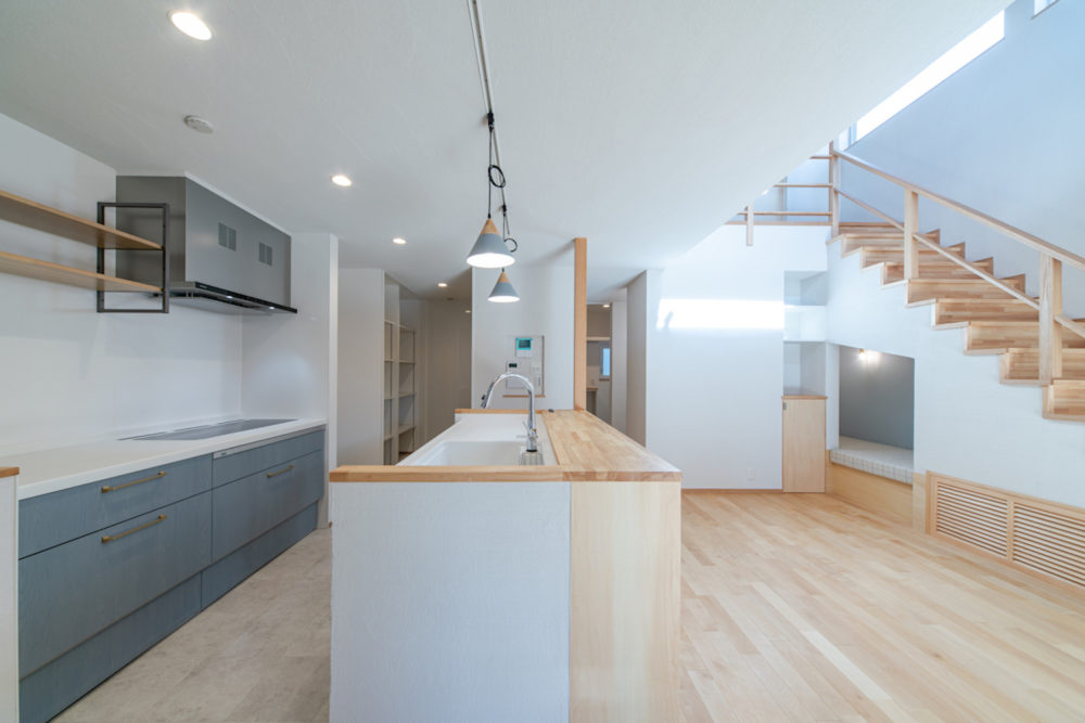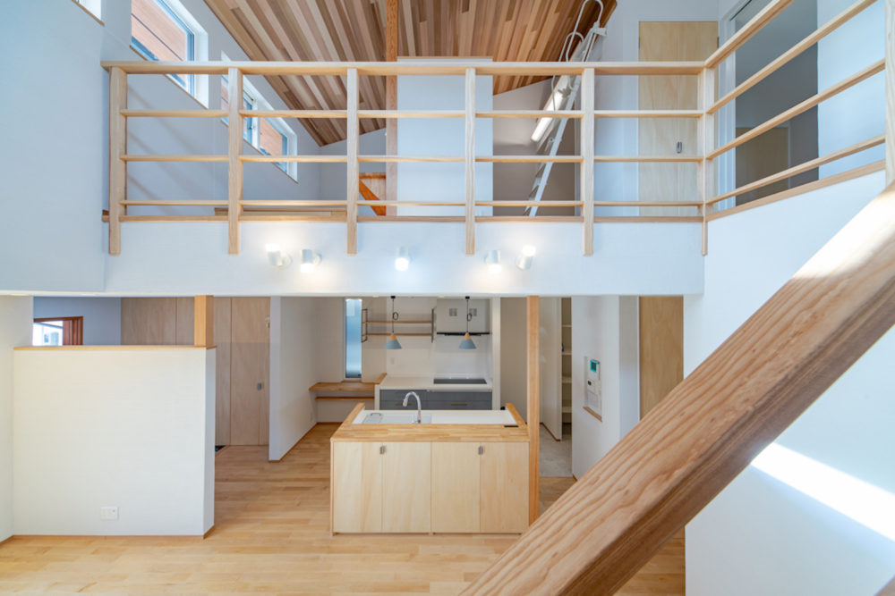 心地良い居場所―宮島口の家 日本三景[宮島]の入り口、廿日市宮島口で、共働きのご夫婦が楽しく快適に暮らすため、耐震性能はもちろん、家事導線・収納・温熱環境などしっかり整理たうえで、閉鎖的にならずに、心地よい小さな“居場所”をいくつも家中にちりばめ、家族が程よい距離感を保ちつつ、快適に過ごせるお家に仕上がりました。 建設地 廿日市市宮島口 建築面積 71.63㎡ 延床面積 104.16㎡ UA値 0.23w/㎡k C値 0.11㎠/㎡