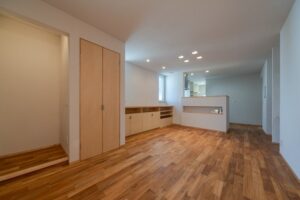 それぞれの居場所で仲良く快適にー坂道に建つ家